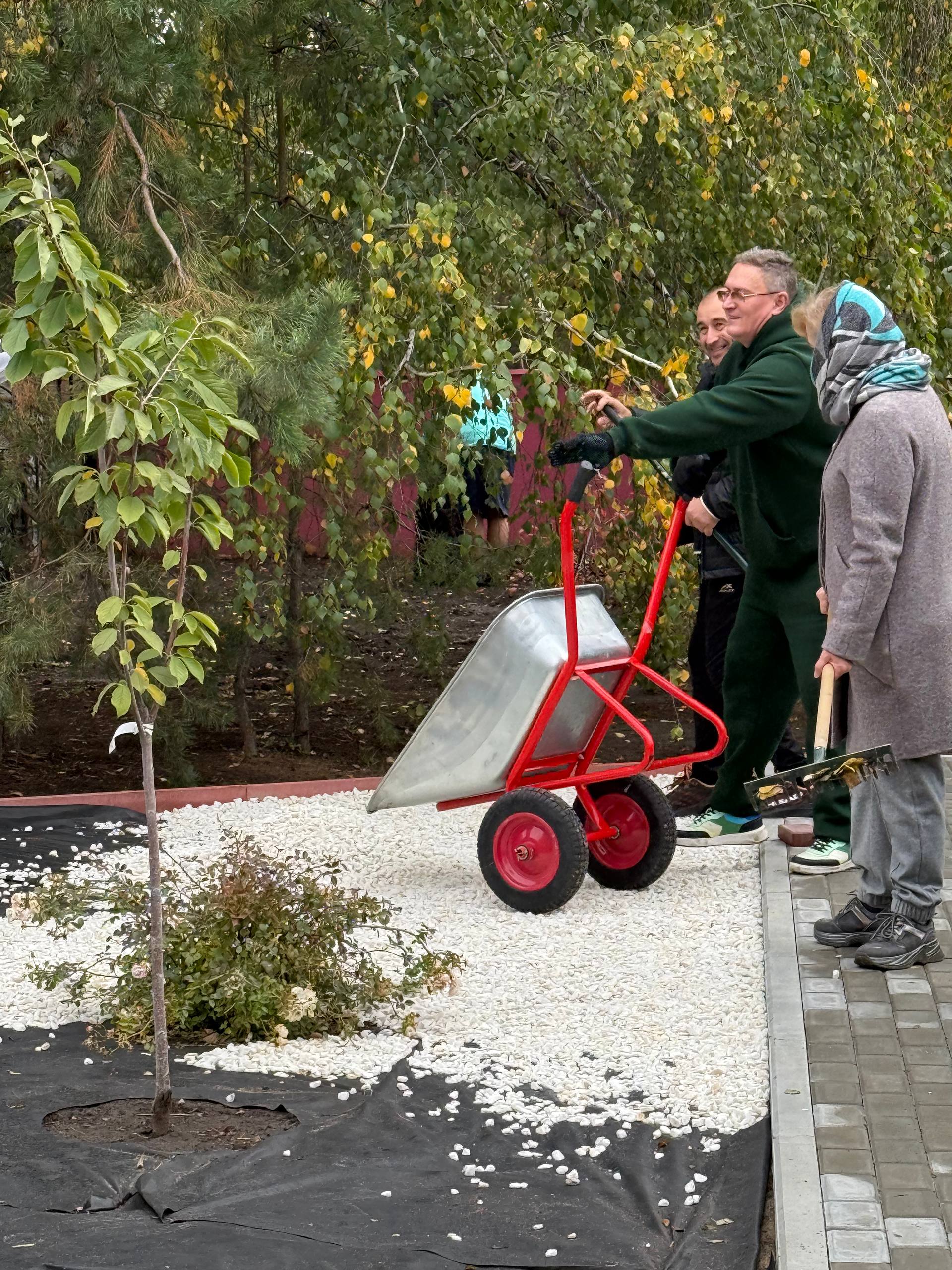 Активные участники, вооружившись необходимым инвентарем, очистили газоны и дорожки от опавшей листвы, пропололи и подготовили к зиме цветочные клумбы, а также подмели двор. Работа шла быстро и слаженно, в атмосфере общинной взаимопомощи и доброго общения.